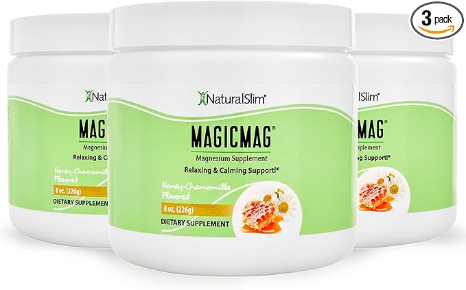 NaturalSlim Magicmag Pure Magnesium Citrate Powder Stress, Constipation, Muscle, Heart Health, and Sleep Support | Honey Chamomile Flavored Magnesium Supplement - 8oz Drink Mix (3 Pack)