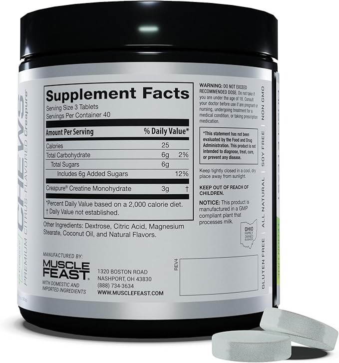 - EASY TO TAKE: Creatine tablets are chewable for taking any time you need a workout boost; take 3 tablets daily