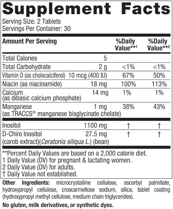 - KEY NUTRIENTS FOR REPRODUCTIVE SUPPORT—Includes vitamin D3, niacin, and calcium, the trace mineral manganese, and two types of inositol.