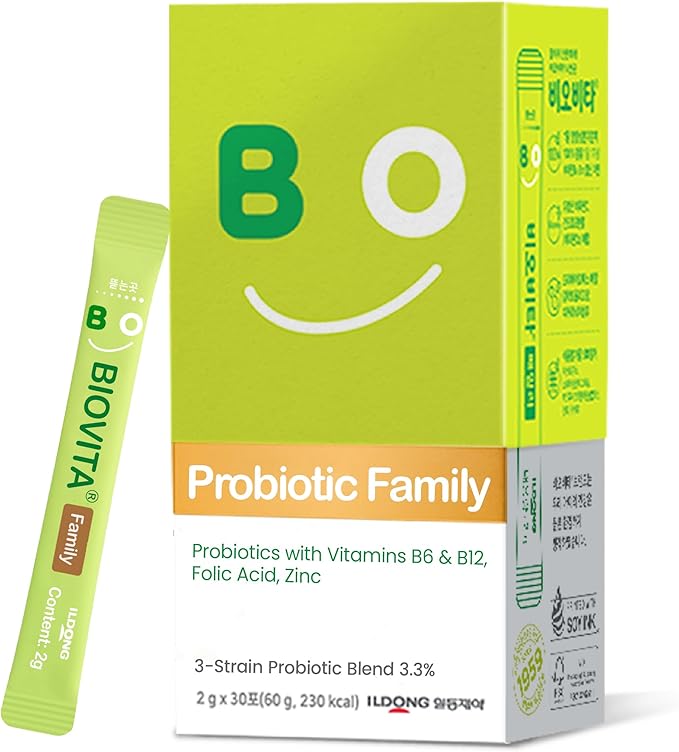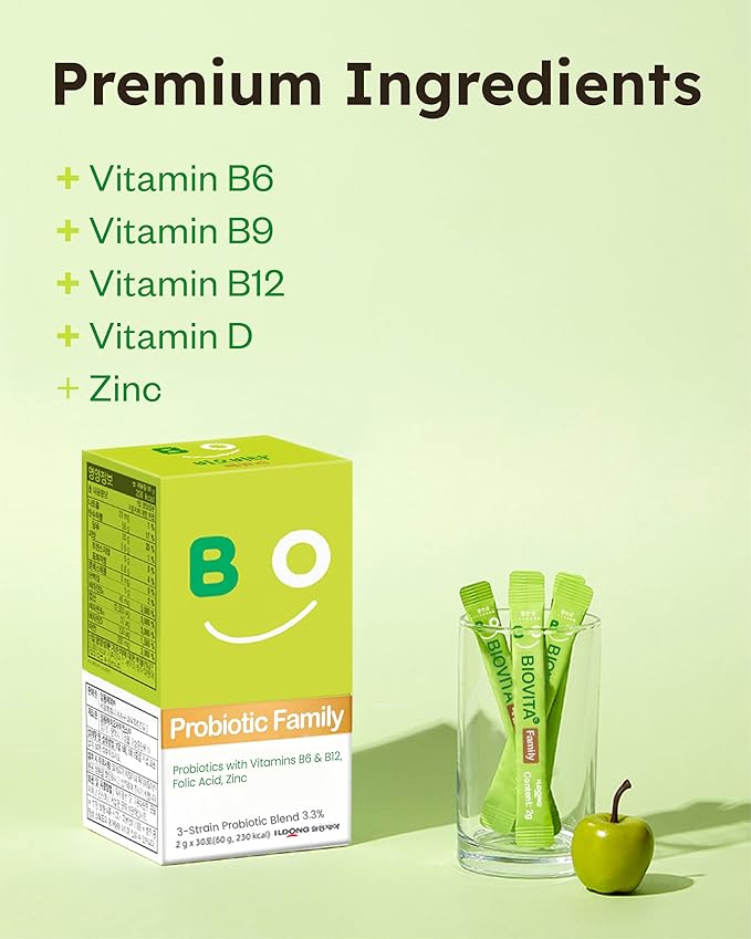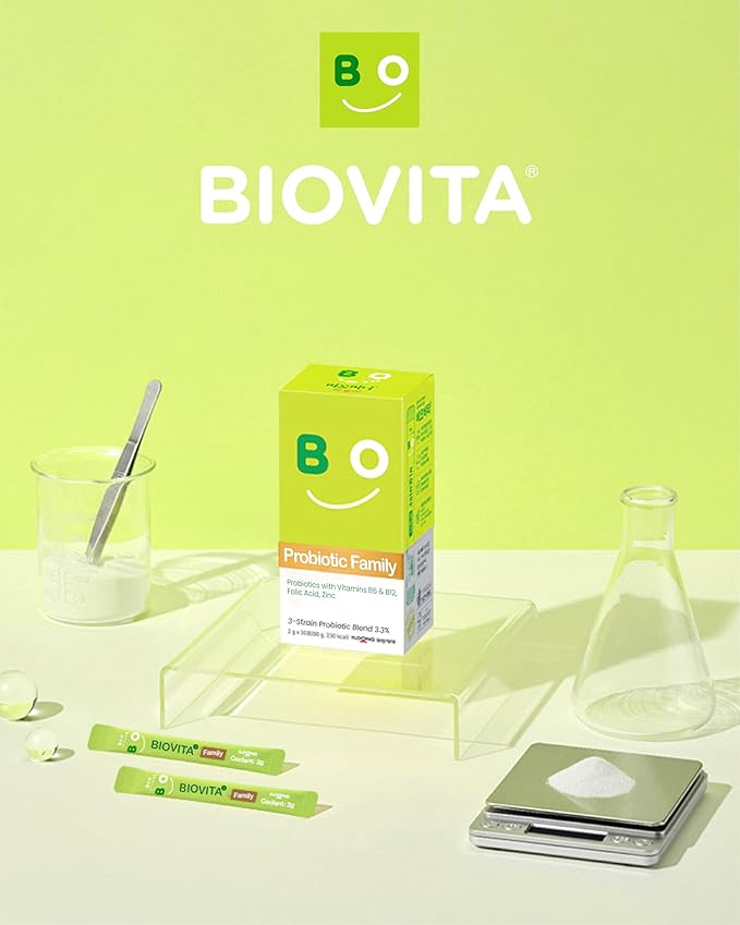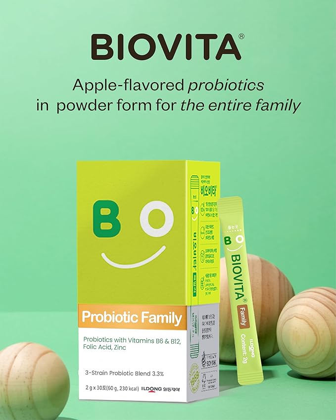 - BIOVITA FAMILY PROBIOTICS POWDER (2g x 30 sticks) - Discover BIOVITA Family Probiotics Powder for your ultimate defense. Our exclusive 3-Strain Complex, including powerful bifidobacteria, digestive enzyme-producing bacteria, and lactobacilli, promotes a robust immune system while enhancing digestive health. Each box contains 30 days' servings.