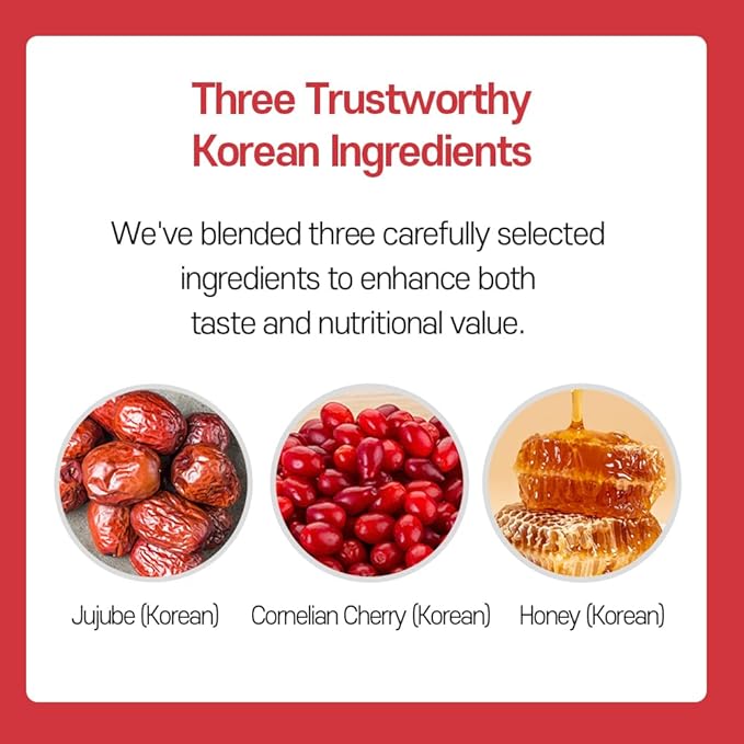 - Natural Energy Infusion: Experience a revitalizing energy boost without the jitters of caffeine. Our expertly blended formula combines Korean Red Ginseng with nourishing ingredients like honey and jujube concentrate to provide a natural and sustained source of energy.