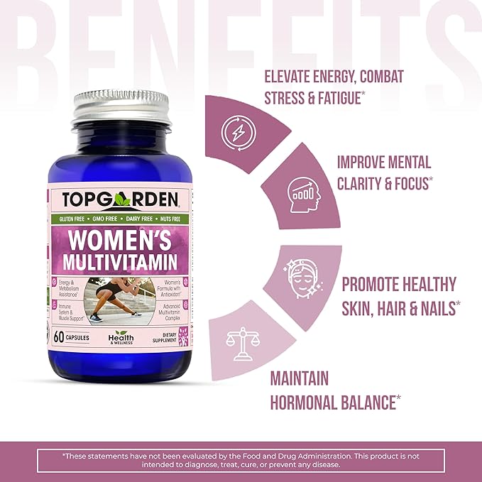 Women's Multivitamin - Essential Multivitamins & Multiminerals Supplement A, C, D, E & B12, with Zinc, Calcium, Magnesium & More for Women's Wellness Support. Boost Your Body and Mind!