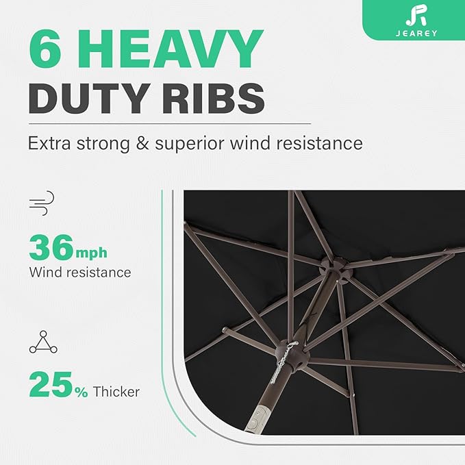 JEAREY 7.5FT Patio Umbrella Market Table Umbrella with 6 Sturdy Ribs, Push Button Tilt/Crank Outdoor Umbrella for Garden, Deck, Backyard, Pool and Beach,Black