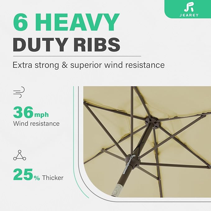 JEAREY 7.5FT Patio Umbrella Market Table Umbrella with 6 Sturdy Ribs, Push Button Tilt/Crank Outdoor Umbrella for Garden, Deck, Backyard, Pool and Beach,Tan