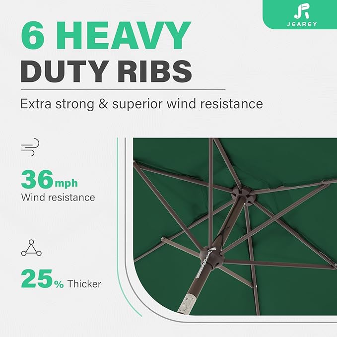 JEAREY 7.5FT Patio Umbrella Market Table Umbrella with 6 Sturdy Ribs, Push Button Tilt/Crank Outdoor Umbrella for Garden, Deck, Backyard, Pool and Beach,Dark Green