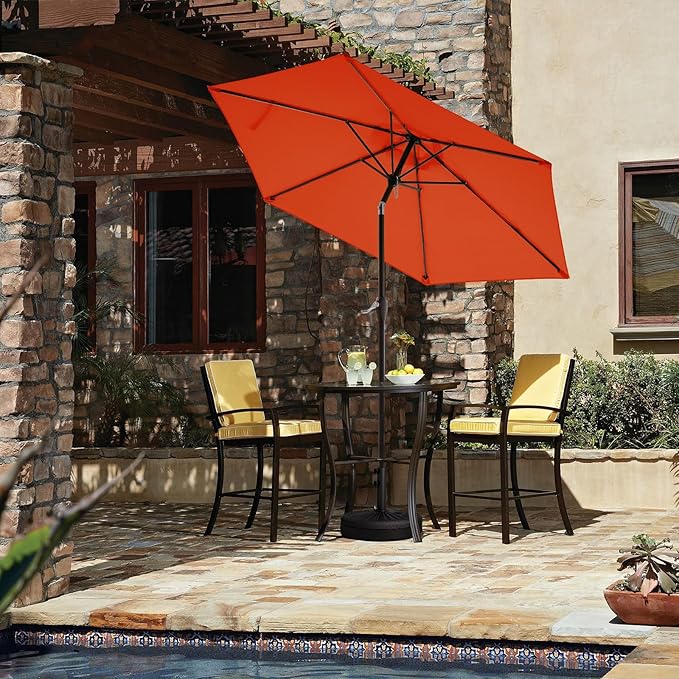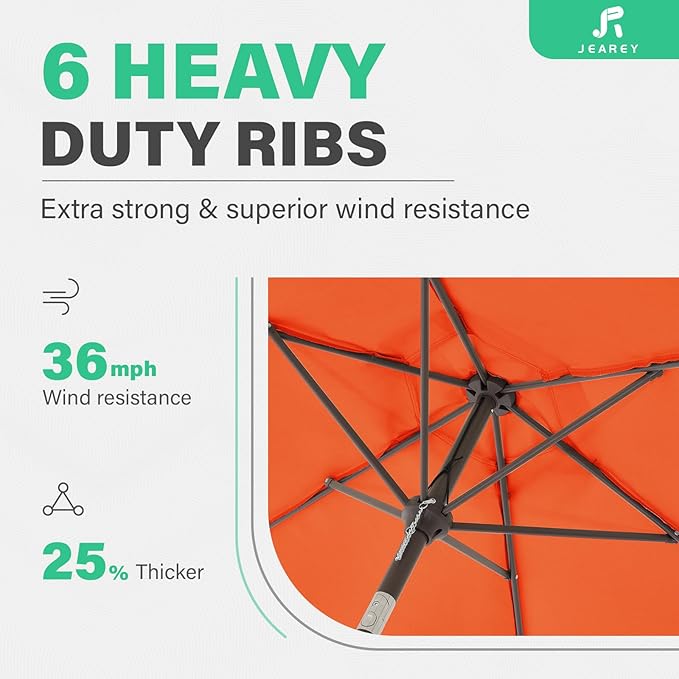 JEAREY 7.5FT Patio Umbrella Market Table Umbrella with 6 Sturdy Ribs, Push Button Tilt/Crank Outdoor Umbrella for Garden, Deck, Backyard, Pool and Beach,Orange
