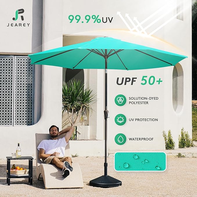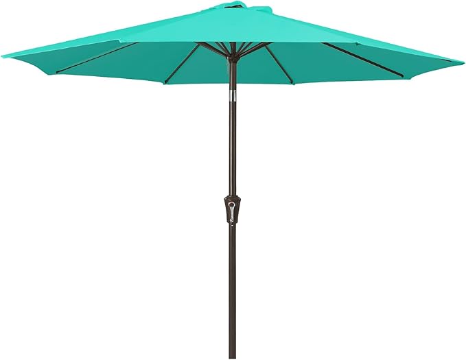 JEAREY 9FT Outdoor Patio Umbrella Outdoor Table Umbrella with Push Button Tilt and Crank, Market Umbrella 8 Sturdy Ribs UV Protection Waterproof for Garden, Deck, Backyard, Pool (Aqua Sky)