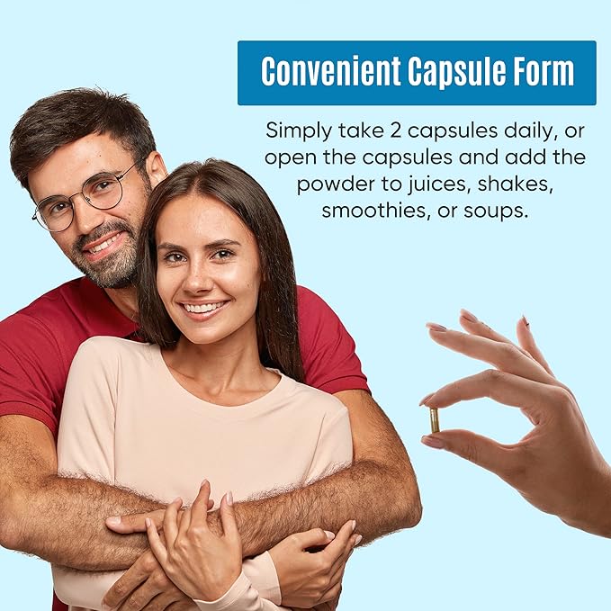 - Convenient Capsule Form: Our convenient capsules offer a hassle-free way to incorporate the benefits of sea moss into your daily routine. Simply take 2 capsules daily or open the capsules and add the powder to juices, shakes, smoothies or soups.