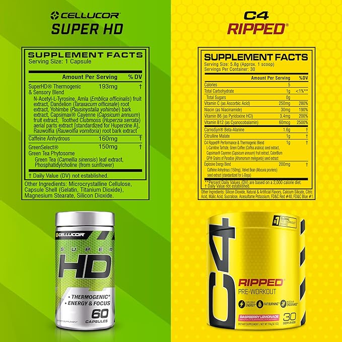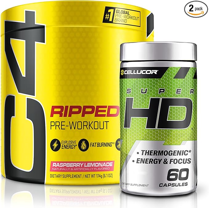 C4 Ripped & SuperHD, The Thermogenic Bundle, C4 Ripped Pre Workout Powder, Raspberry Lemonade 30 Servings + SuperHD with Capsimax and Green Tea Extract, 60 Servings