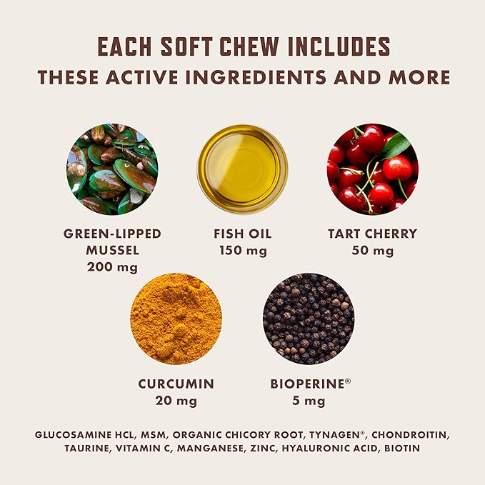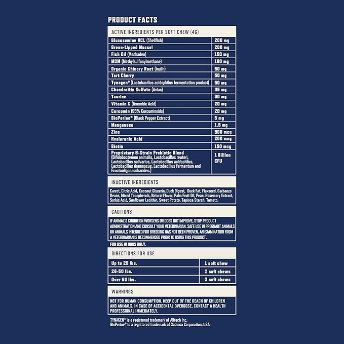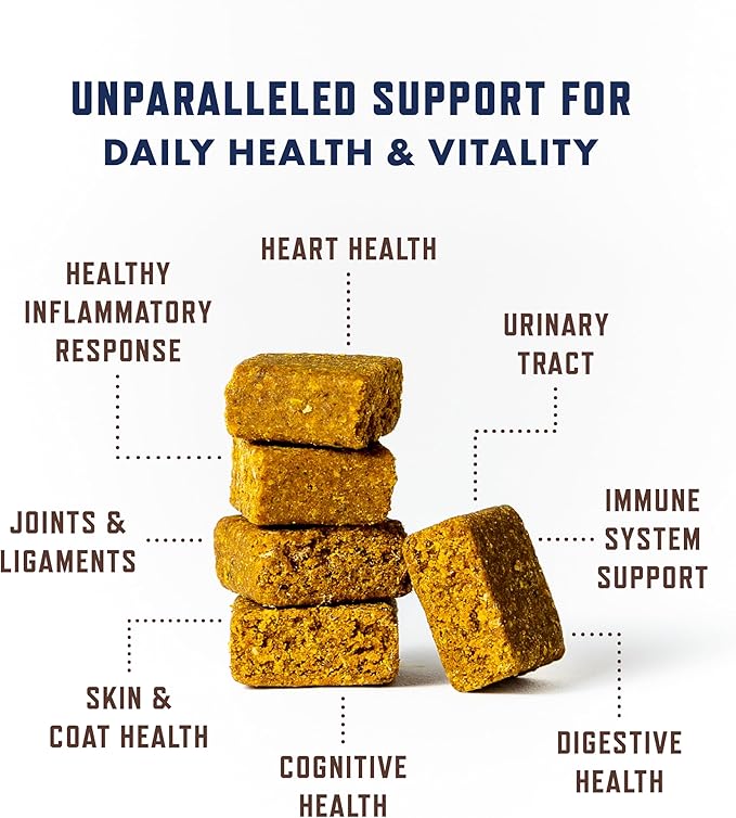 - Unparalleled Support - Our delicious duck-flavored soft chews provide unparalleled support for your dog’s daily health & vitality by targeting 8 key areas of their health & wellness. Each soft chew supports their immune system, inflammatory response, heart, digestive, joint, skin, urinary tract, and cognitive health for a well-balanced pup.