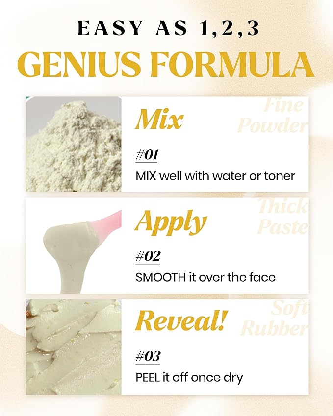 - EASY AS 1,2,3! Mix powder and water 1:1 in a mini bowl (1 spoon covers your face). Spread evenly with the spatula, applying a thicker edge for easy peeling. Leave on for 15–20 mins, peel off, and wipe residue with a cotton pad. Finish with moisturizer. 40 uses per 2.2 lb package!