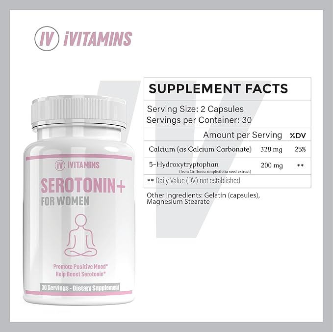 - Elevate your mood naturally with our Serotonin supplement for women! By increasing serotonin levels, it can help enhance your overall emotional well-being, leading to a happier and more positive outlook on life.