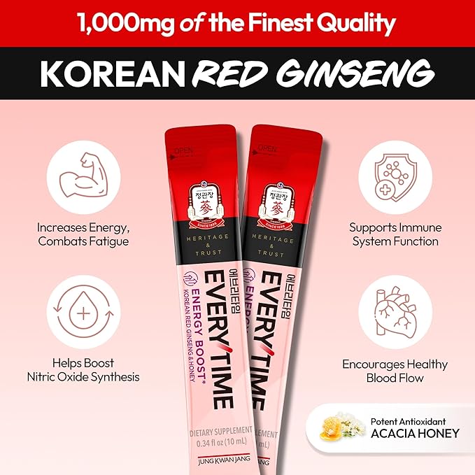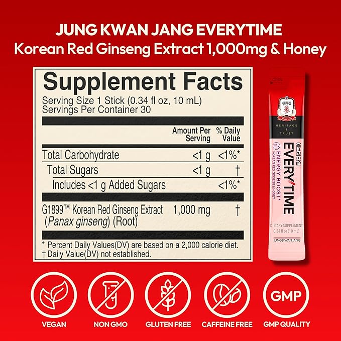 - Flavor : Honey – 1,000mg Korean Red Ginseng Extract