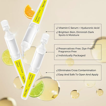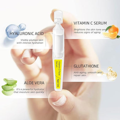 Brightening & Hydrating Face Serum with Vitamin C, Hyaluronic Acid, Glutathione, and Botanical Extracts,– Multi-Action Antioxidant, Barrier Repair & Anti-Aging Formula, 15 Pcs/Box Ampoules