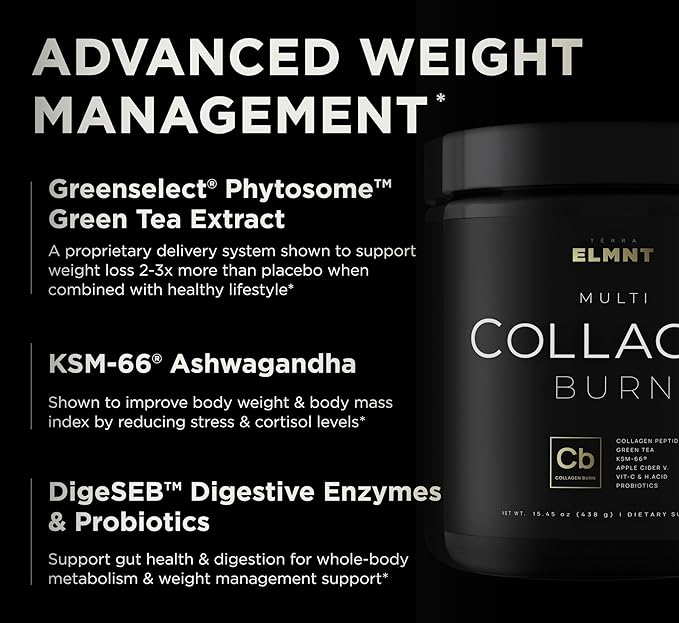 - ๐๐จ๐ฅ๐ก โฌฉ ๐๐๐๐จ๐ง๐ฌ โฌฉ ๐๐๐๐๐ง๐ - ELMNT Super Multi Collagen Burn Premium Collagen Peptides Powder for Women made with a comprehensive & holistic formula to support a healthy metabolism, stronger hair, radiant skin plus healthy gut & digestion for comprehensive health & body weight management.*