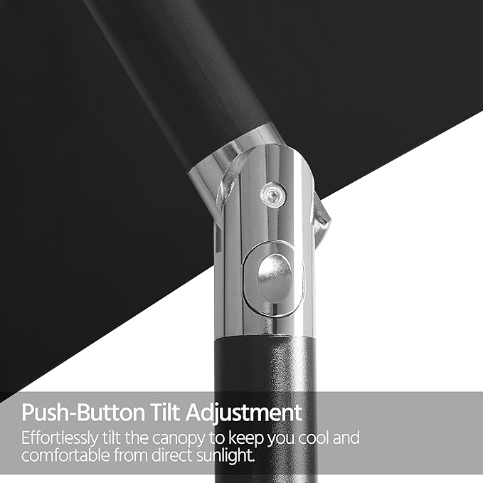 - 9ft tiltable canopy: With a push at the button at the pole’s joint, the 9ft canopy can be tilted in two directions to your preference and offers a more flexible and consistent shade throughout the day.