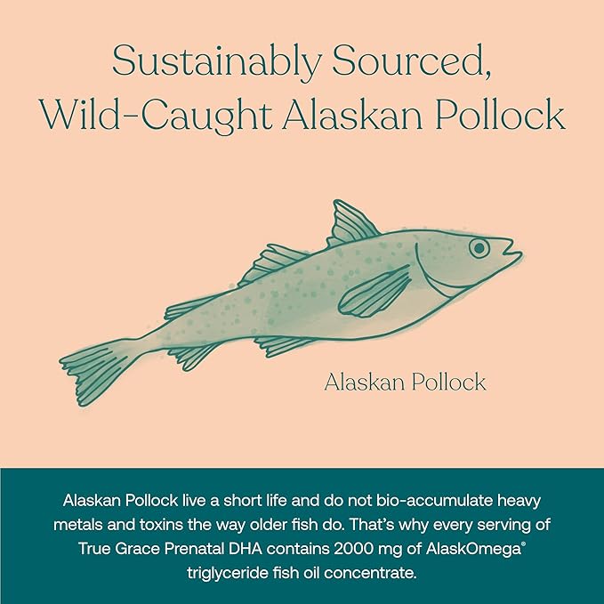 True Grace Prenatal DHA - 60 Softgels - 1400mg of DHA & EPA - for Pre-Conception, Pregnancy & Lactation - Wild Caught & Sustainably Sourced - Gluten Free - 30 Day Supply