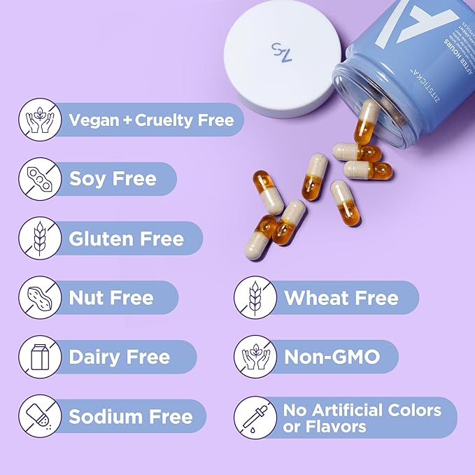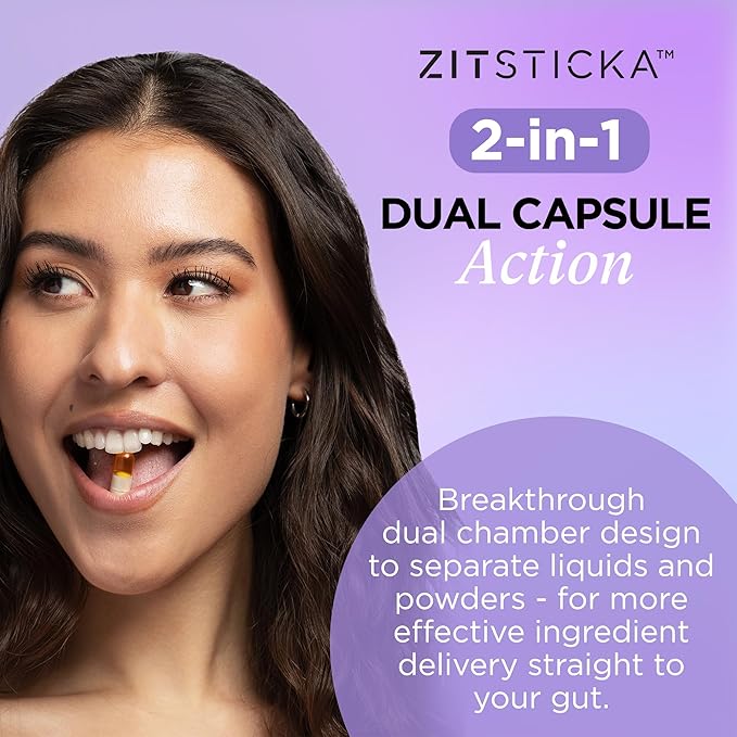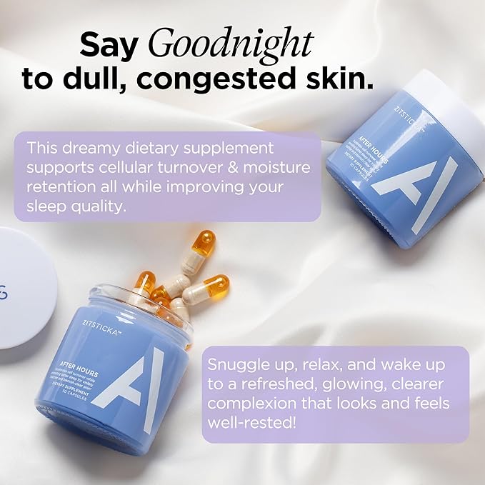 ZitSticka Vitamin Acne Supplement for Cystic Acne w/ 30 Natural Caps for Women and Men, Supplements for Hormonal Support, Skin Clarity, Dark Spots - Dermatologist Tested (After Hours Ceramides)