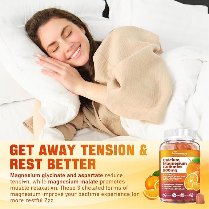 - Get Away Tensi0n & Rest Better - Our calcium supplement contain three chelated forms of magnesium, which help to improve the stability and bioavailability of minerals and vitamins, promoting better body absorption. Magnesium glycinate and magnesium aspartate help alleviate tensi0n, while magnesium malate supports muscle relaxati0n. These components collaborate to elevate your bedtime experience, ensuring a more restful Zzz.