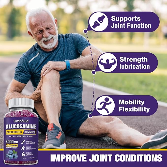 - [ Support Joints Healthy ]: Glucosamine chondroitin is an important chondrotrophic nutrient that has been shown to support joint cartilage repair. At the same time, MSM can reduce joint discomfort and support healthy joints. Simhould glucosamine chondroitin gummy can repair damaged joints, increase synovial fluid accumulation, and provide shock-absorbing protection.