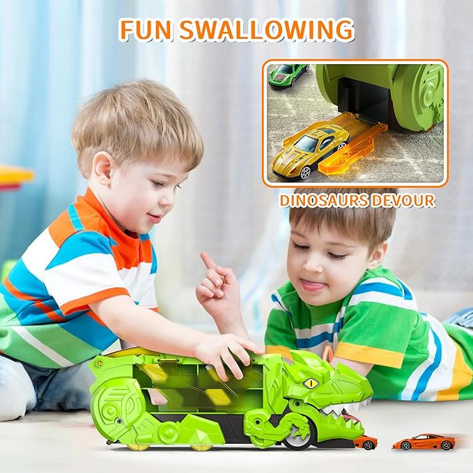 - 【Exciting Car-Swallowing Action!】 The dino truck has a giant mouth that "eats" mini cars, then releases them through the tailgate, creating a thrilling car escape game for kids ages 3-12. Watch their imagination roar with this interactive feature!