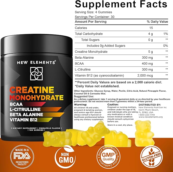 Creatine Monohydrate Gummies 5mg with BCAA L-Citrulline Beta Alanine & Vitamin B12 | The Ultimate Energy Booster