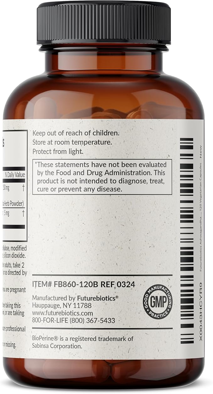 - Herbal Stress Support: Ashwagandha Extra Strength helps to support a healthy stress response, maintain healthy cortisol levels, support a positive mood, and memory.* Futurebiotics Ashwagandha additionally includes BioPerine, which has been clinically shown to enhance nutrient absorption.*