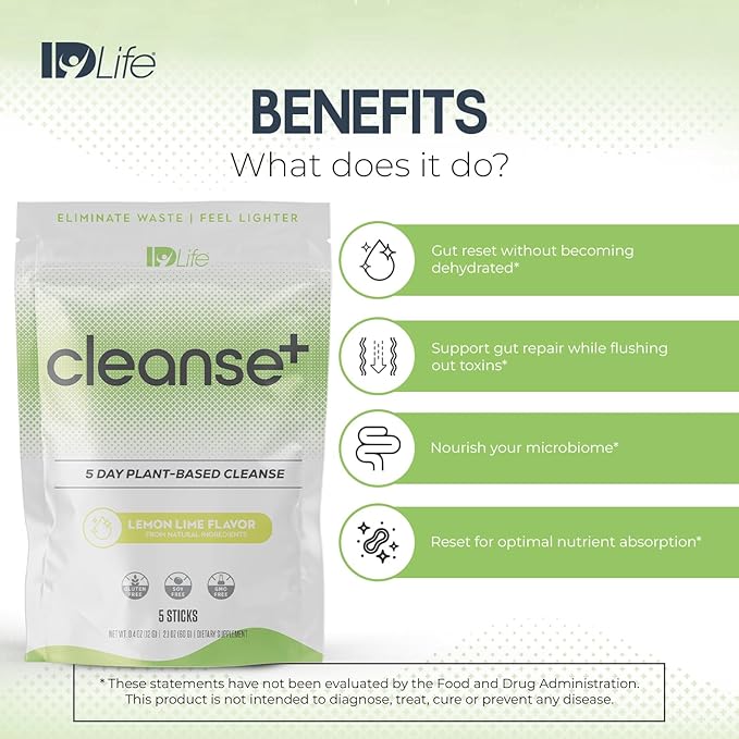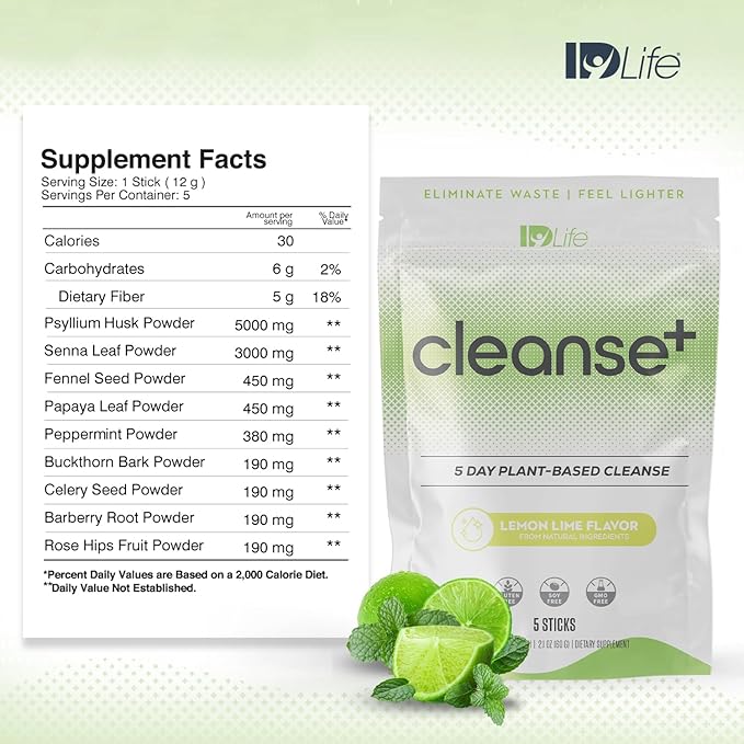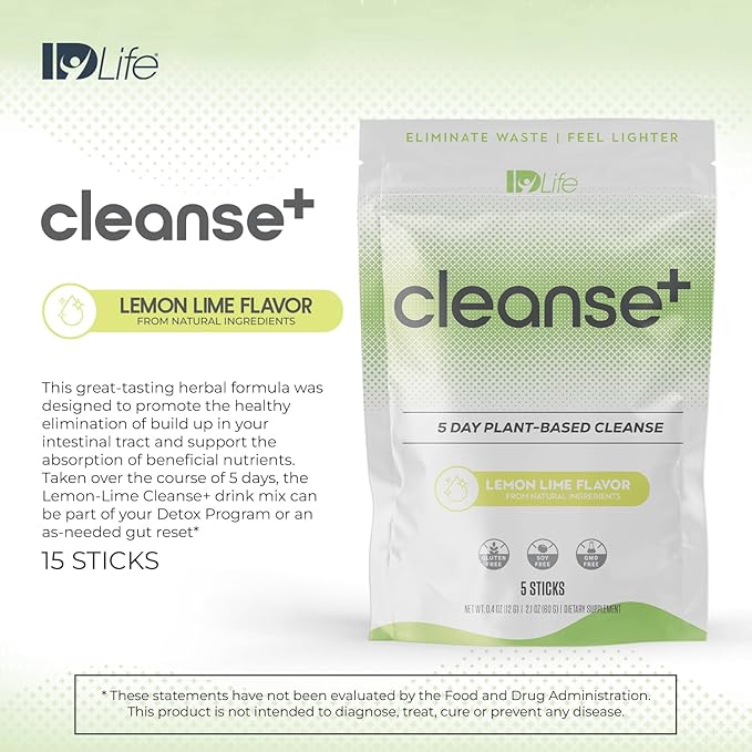 IDLife | Cleanse+ - Lemon-Lime | Cleanse+ Powder Drink Mix - 5-Day Gut Reset Formula for Healthy Elimination and Nutrient Absorption - for Digestive and Gut Health - 5 Sticks per Bag