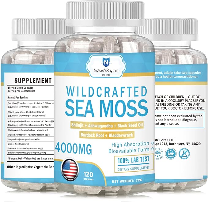 - 【Highly Concentrated Formula】Each Capsule Contains: Sea Moss 800mg, Shilajit 100mg, Burdock Root 200mg, Bladderwrack 300mg. This highly concentrated formula helps you absorb the active ingredients for optimal results.