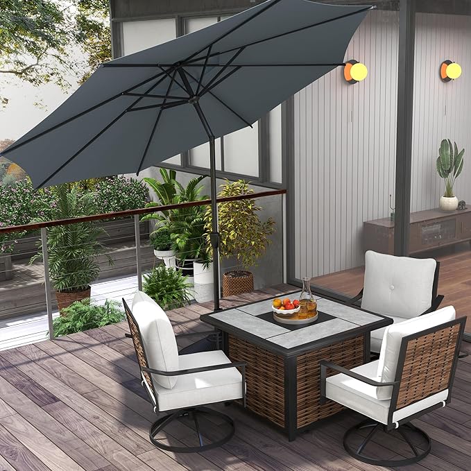 - Convenient Crank Operation: Adjusting the shade is simple with the crank-lift system. A few turns raises the canopy to the perfect height. Lowering is just as easy - no heavy lifting required. The tilt mechanism follows suit with an intuitive push-button design. A brief press angles the umbrella outdoor patio however you like. Find just the right shading whether seated or standing.
