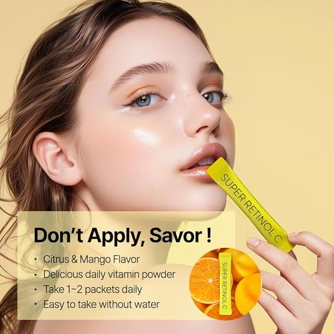- BEAUTY CARE THAT TASTES GOOD - Super Retinol C is refreshing with citrus and mango flavors, and the powdered formulation is ready to eat without water. You can add it to water, yogurt bowls, collagen smoothies, or any other way you like.