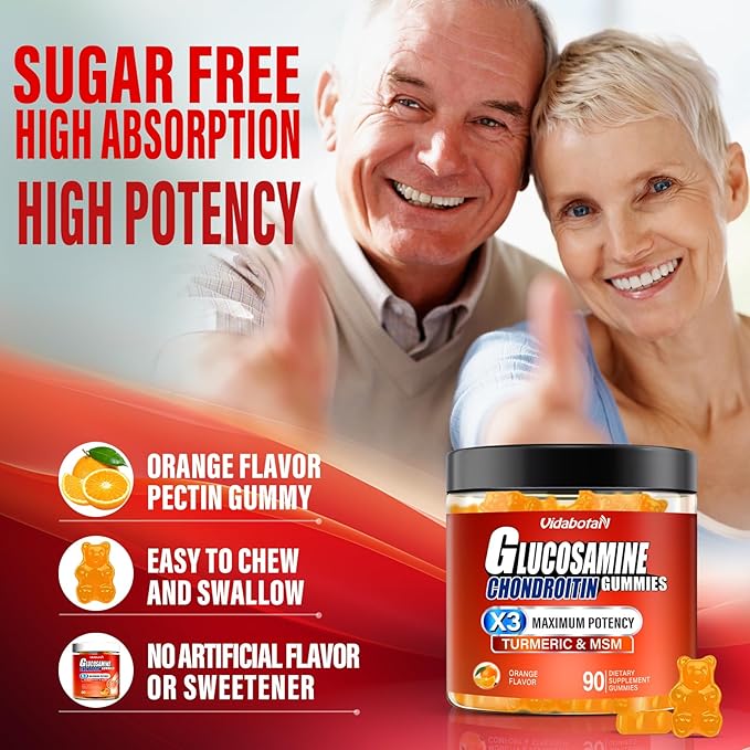 Sugar Free Glucosamine Chondroitin Gummgies, Extra Strength 1500mg with MSM &Turmeric, Orange Flavor, Gluten-Free Gummies (90 Count)