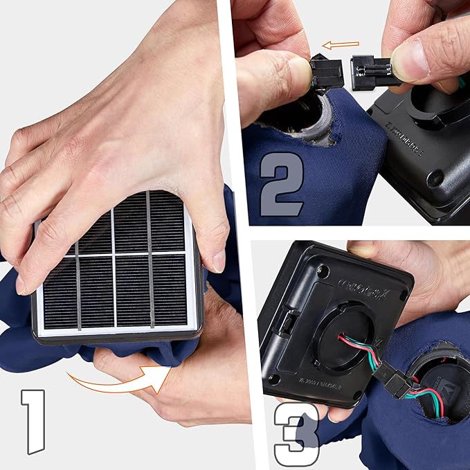 - 18 solar-powered LED lights: There are 18 LED lights strung along the powder-coated ribs for additional lighting. They are powered by the top solar panel and a solar AA rechargeable battery and have a run time of 8 hours after a full charge. A handy switch on the pole controls the lights.