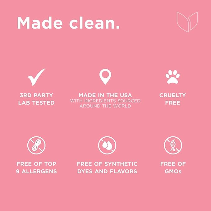 - Free of top 9 allergens, gelatin, high fructose corn syrup, artificial sweeteners, synthetic dyes, and artificial flavors