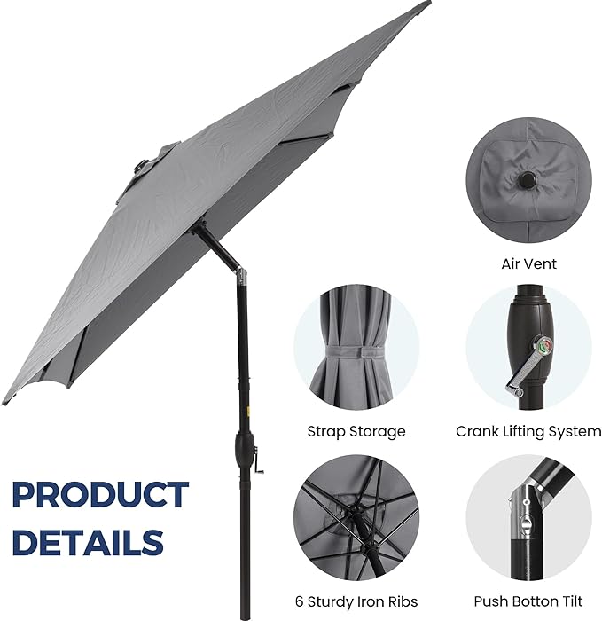 - PUSH-BUUTTON TILT: The outdoor umbrella is designed with a crank lifting system, which is easy and fast to use, and the push-button tilt function can realize 360° sunshade, so that the sun does not leave your left and right