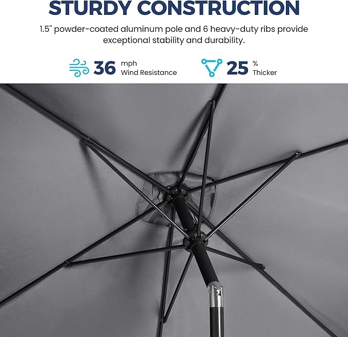 - FADE-RESISTANT: Patio umbrella is made of 100% polyester fiber, waterproof and UV resistant. Garden umbrella 200g/sqm polyester sombrillas de patio can last for many years with colorfastness of Grade 4 min. at 400 hours