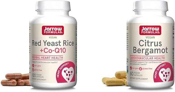Jarrow Formulas Red Yeast Rice 1200 mg & Co-Q10 100 mg Per Serving-120 Veggie Caps-60 Servings & Heart Health-Vegan & Citrus Bergamot 500 mg-60 Servings (Veggie Caps)