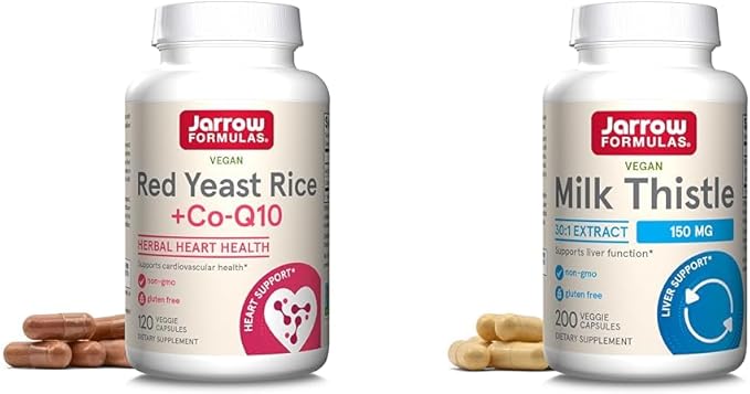 Jarrow Formulas Red Yeast Rice 1200 mg & Co-Q10 100 mg Per Serving-120 Veggie Caps-60 Servings & Heart Health-Vegan & Milk Thistle 150 mg with 30:1 Standardized Silymarin Extract