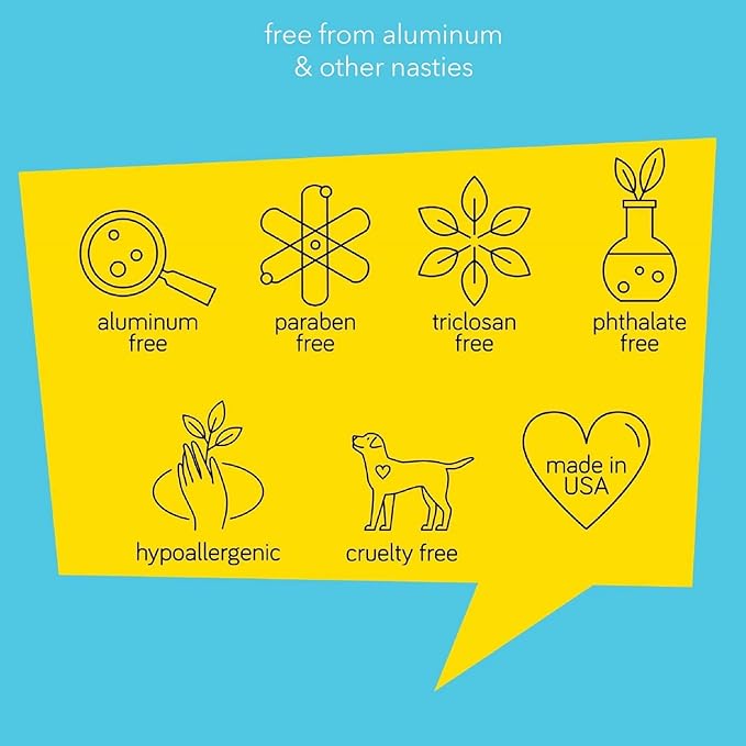 - NATURAL AND SAFE - Hypoallergenic and dermatologist-tested, our gentle yet effective deodorant glides on silky smooth and leaves delicate skin soft and cozy, never scratchy. Our formula is toxin-free; we never use aluminum, parabens, triclosan, phthalates, or other harsh chemicals. Our products are eco-friendly, vegan, and not tested on animals.