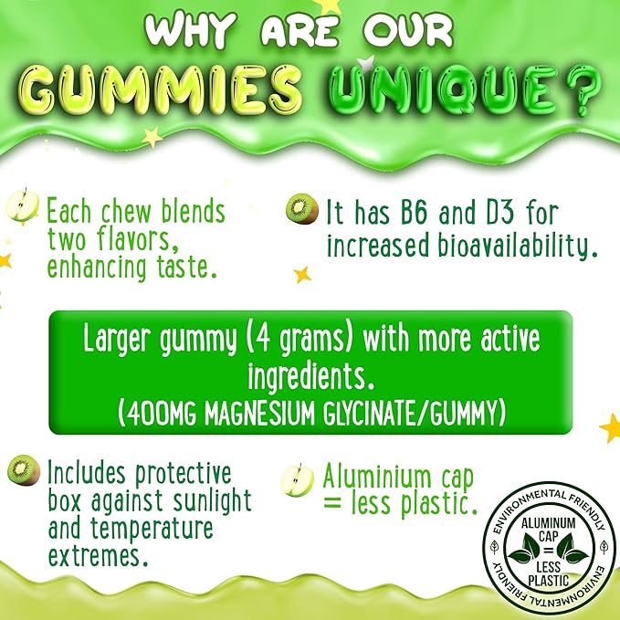 - Gentle and Effective Magnesium Support for All Ages: Each magnesium glycinate gummy delivers 400mg of magnesium glycinate with vitamin B6 & D3, offering enhanced absorption to support muscle health, relaxation, and restful sleep for the whole family.