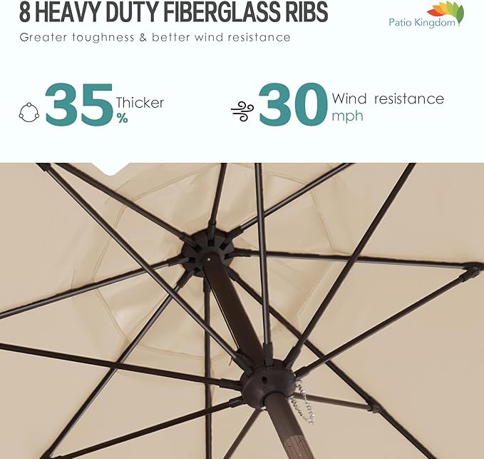 - ✔️【Windproof Design with 8 Fiberglass Ribs】Reinforced with 8 rust-proof fiberglass ribs + powder-coated iron pole for maximum stability. Top wind vent reduces sway and keeps airflow cool. 30% lighter than steel frames
