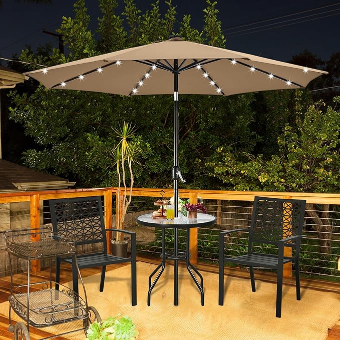 - Functional patio addition: This 9ft patio LED umbrella can provide a nice and cool oasis for a 42" to 54" patio table with 4 to 6 chairs during the daytime, and the lights can add a lot of atmosphere and sparkle to your cozy evening.