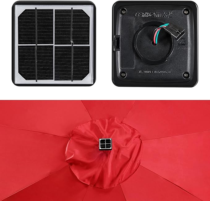 - 32 LED lights with 2 power supplies: This 10ft patio canopy features 32 LED lights with 2 power supplies – a solar panel and a solar AA rechargeable battery, making sure that you can have full enjoyment all year round.