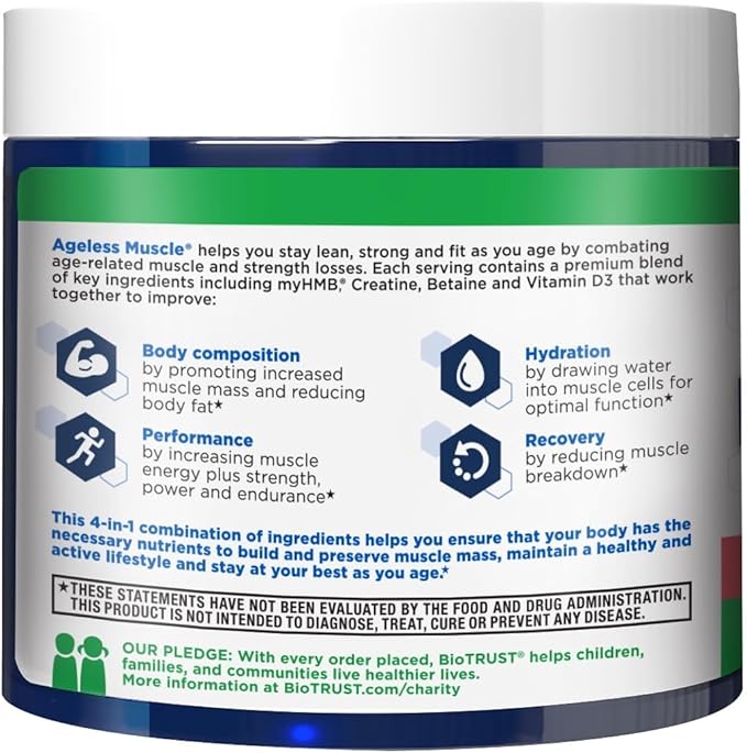- MUSCLE BUILDER FOR MEN & WOMEN. Advanced benefits in 1 premium powder: Act against age-related muscle mass decline with Ageless Muscle; our creatine monohydrate and HMB supplements help prevent natural muscle loss that comes with aging.