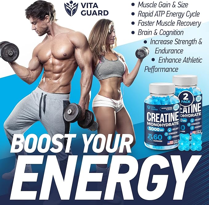 5000mg Creatine Monohydrate Gummies Formula for Men and Women Ultimate Muscle Builder, Energy Booster & Pre-Workout Supplement (2 Pack)
