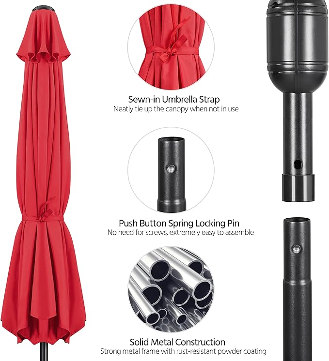 - Effortless crank lift: The crank market umbrella helps you simply and quickly unfurl the 10ft umbrella to offer shade over a patio furniture set of a 54-62" table and 6 to 8 chairs or 2 pool loungers.