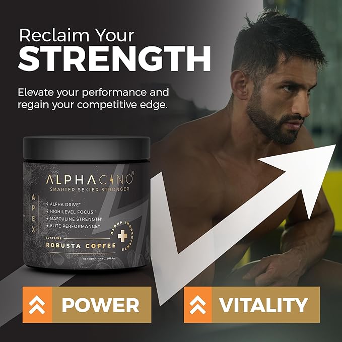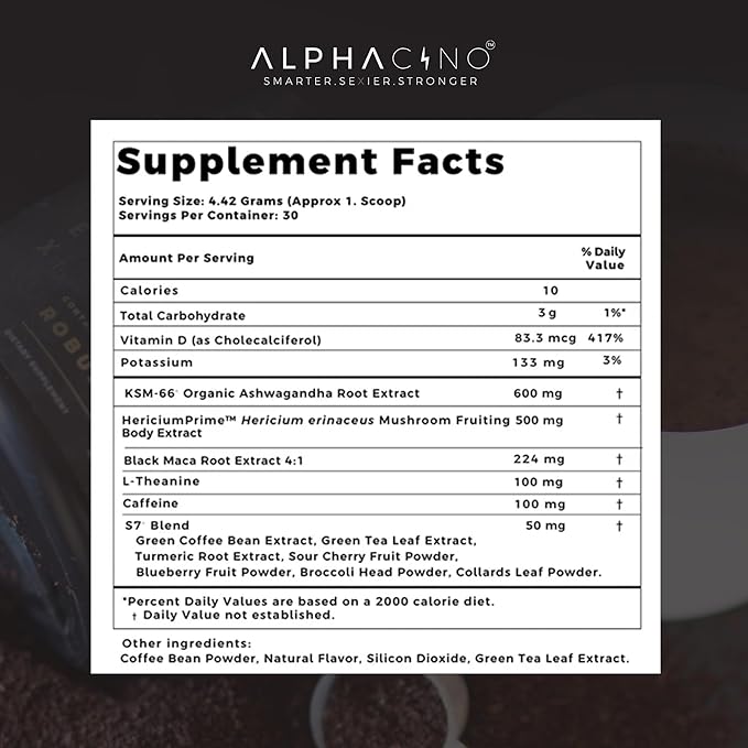 - SUPPORT VITALITY: Alphacino coffee for men supports male vitality with black maca root and Ashwagandha ingredients.