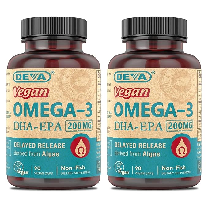 DEVA Vegan Omega-3 DHA-EPA, from Micro Algae, Delayed Release, 90 Vegan Capsules (Pack of 2)