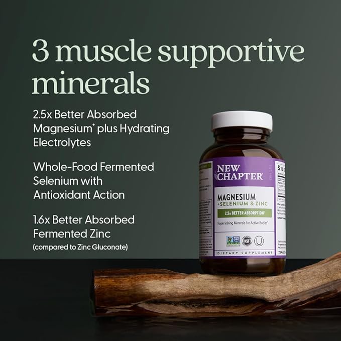 New Chapter Magnesium-Selenium-Zinc Supplement for Active Bodies, Bounce Back After Exercise with Muscle Support Minerals + Hydrating Electrolytes, 325 mg Magnesium in One-Daily Tablet, 30 Count