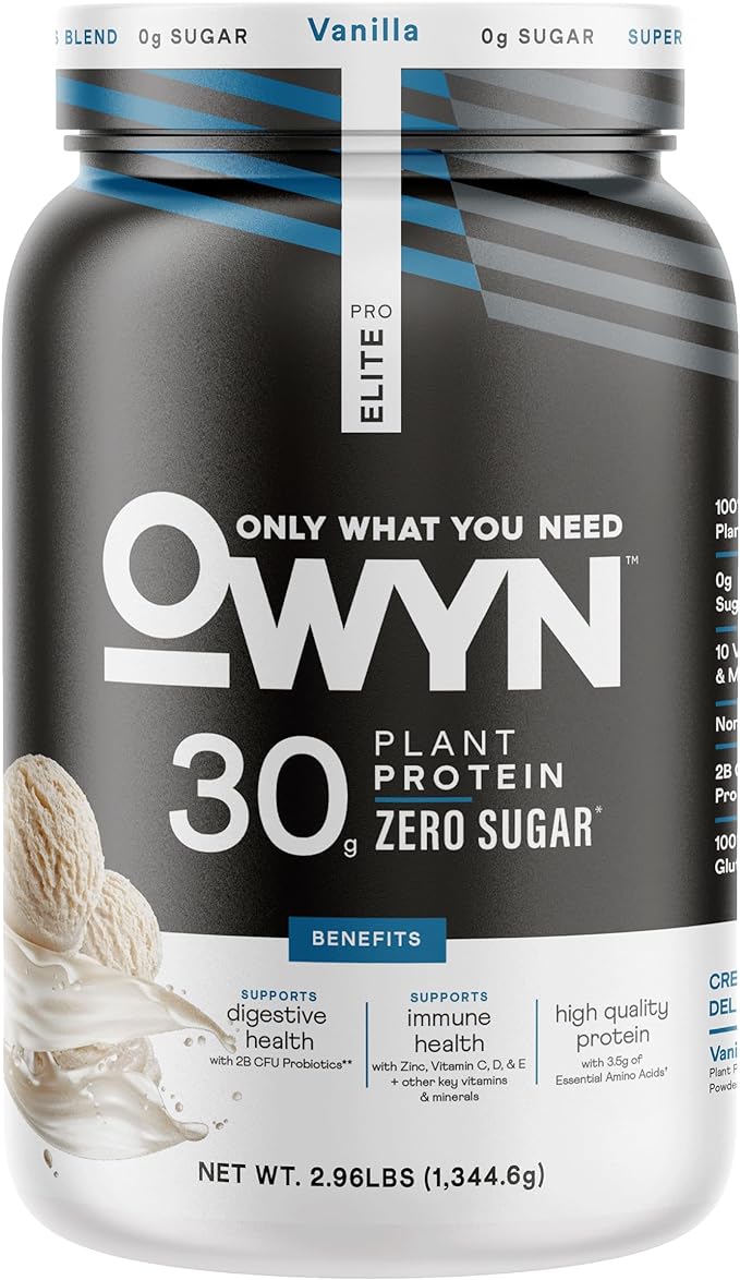 OWYN Only What You Need Pro Elite Vegan 30g Plant-Based High Protein Powder, Zero Sugar (Vanilla, 2.9 lbs)